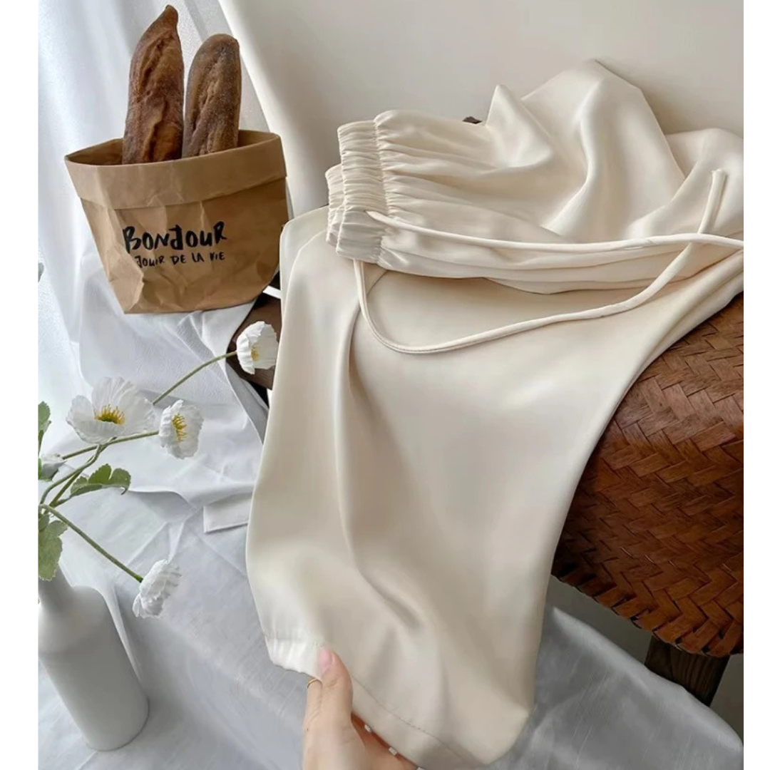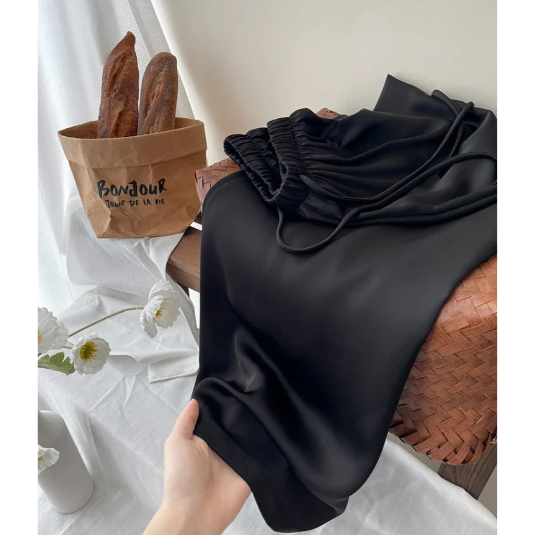 Le pantalon satin Sybille est la pièce chic et décontractée à ajouter à votre dressing. Avec son tissu satiné couleur écru et noire, il capte la lumière tout en douceur pour un effet raffiné sans effort. Sa coupe fluide épouse délicatement la jambe, et sa taille élastique avec lien de serrage assure un ajustement confortable, quelle que soit votre silhouette.